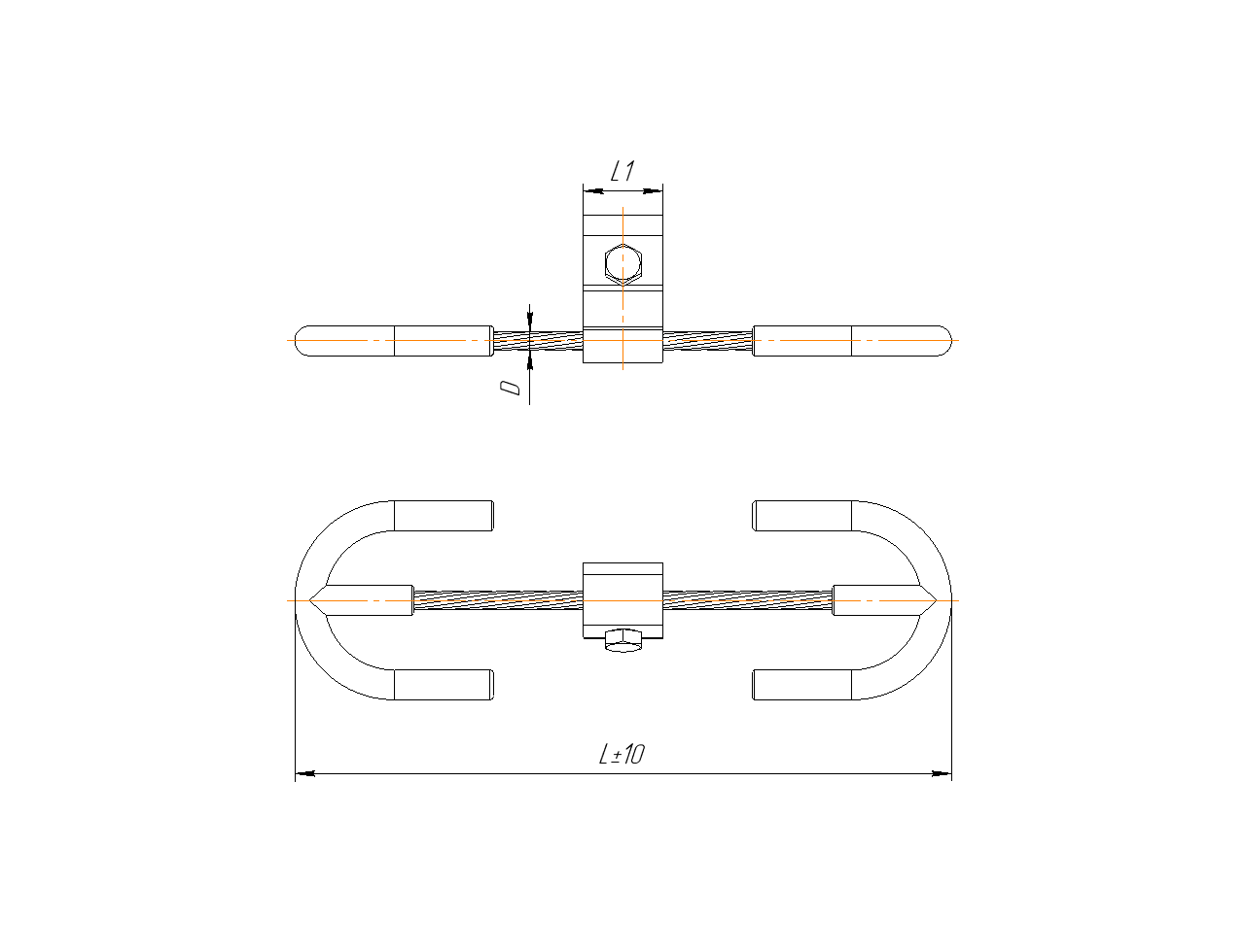 | Масса груза, кг | Длина гасителя L, мм | Диаметр троса
