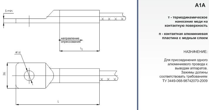 Зажим аппаратный прессуемый А1А предназначен для присоединения одного алюминиевого провода к выводам аппаратов. Зажимы должны соответствовать требованиям ТУ 3449-068-98742070-2009.