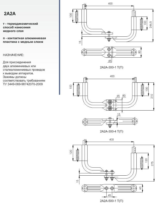 Для присоединения двух алюминиевых или сталеалюминиевых проводов к выводам аппаратов зажимы должны соотвествоватьтребованиям ТУ 3449-069-98742070-2009.