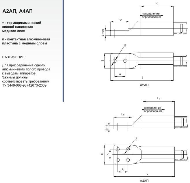 Зажимы аппаратные прессуемые типов А2АП, А4АП (с двумя и четырьмя отверстиями в контактной лапке)