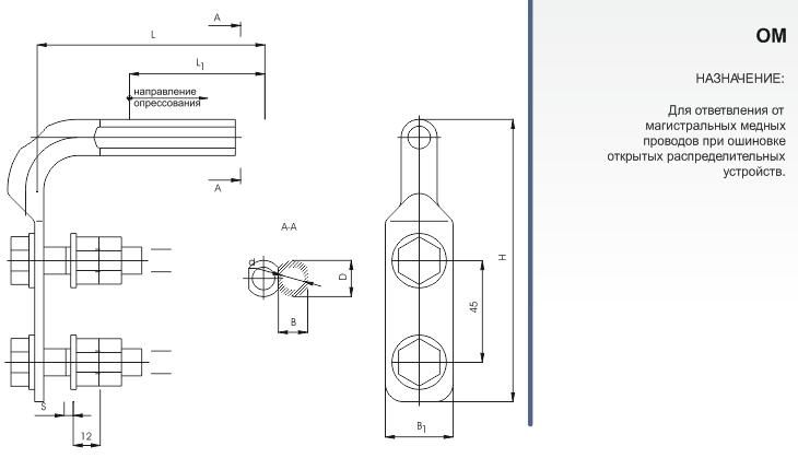 Зажимы ответвительные прессуемые типа ОМ