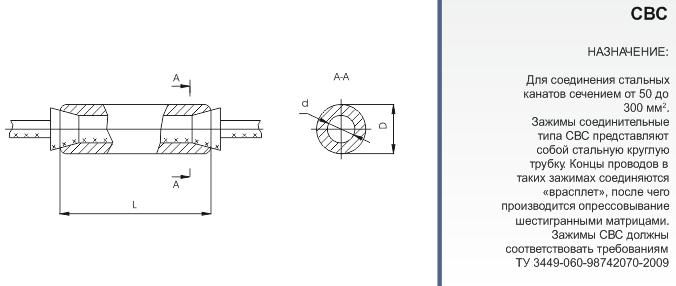Зажимы СВС должны соответствовать требованиям ТУ 3449-060-98742070-2009