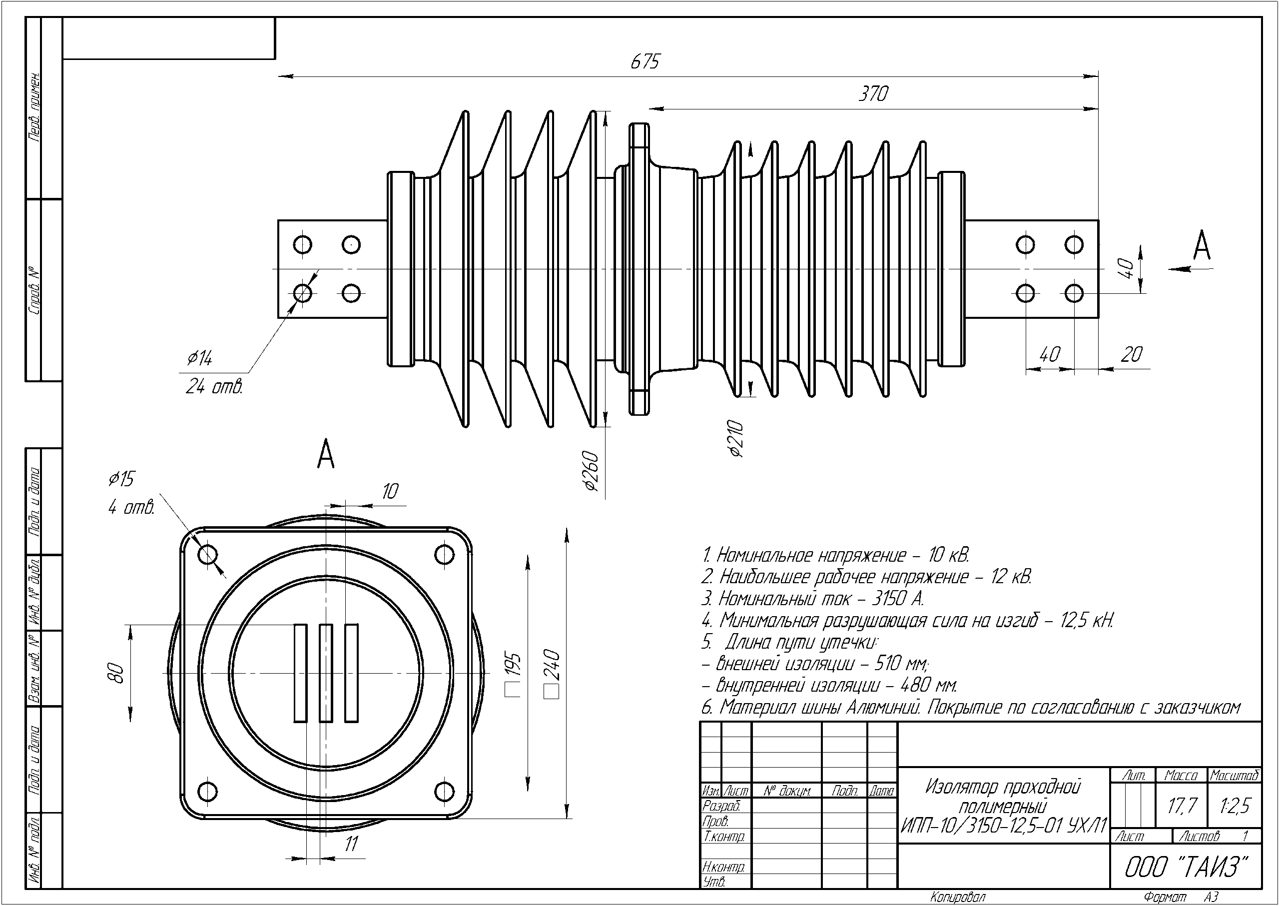 Изолятор проходной полимерный ИПП-10/3150-12,5-01 УХЛ1