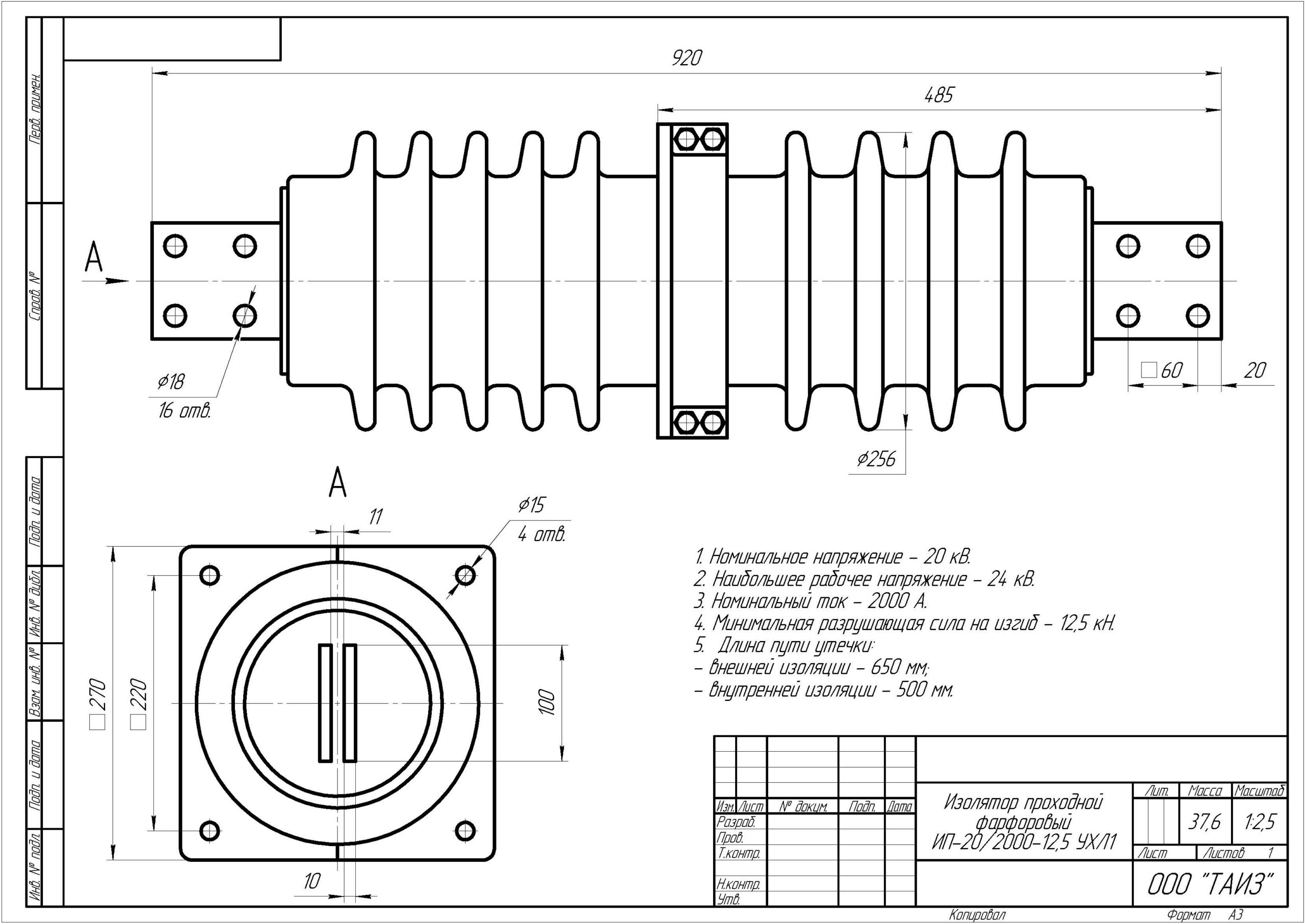 Изоляторы проходные фарфоровые ИП-20/2000-12,5 УХЛ1 предназначены для проведения, соединения и изоляции токоведущих частей закрытых распределительных устройств электростанций и подстанций, комплектных распределительных устройств с открытыми распределительными устройствами или линиями электропередачи, а также для закрытых токопроводов переменного тока напряжением 6 — 35 кВ. частотой 50 Гц, расположенных в районах с I— IV степенью загрязнения по ГОСТ 9920.