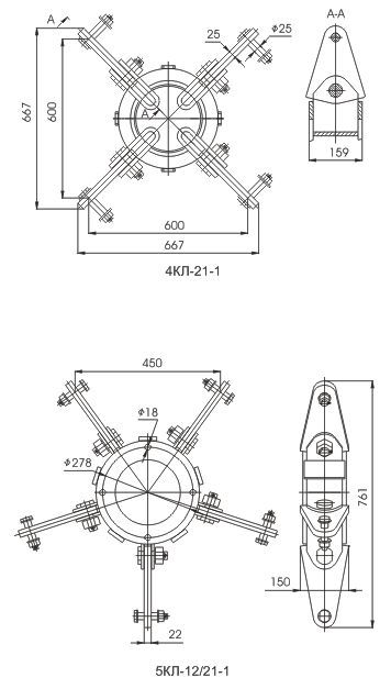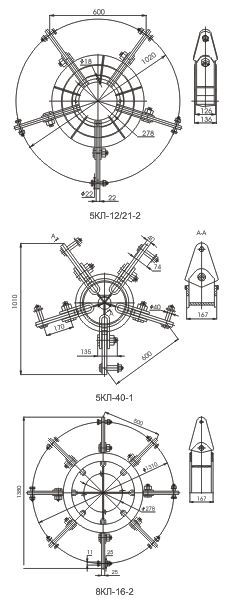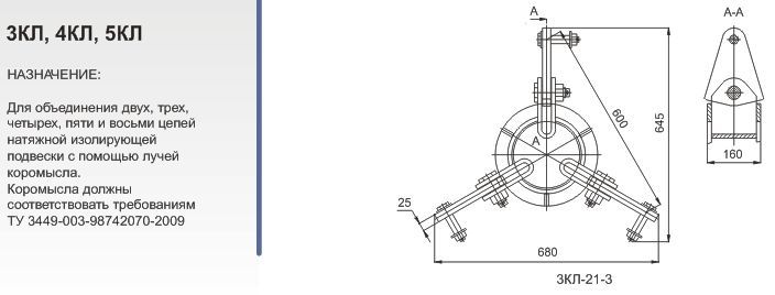 Для объединения двух, трех, четырех, пяти и восьми цепей натяжной изолирующей подвески с помощью лучей коромысла.